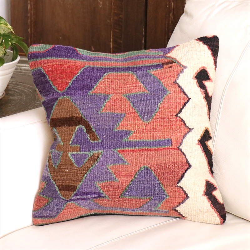 Key:Old Kilim, Kilim Cushion, Turkish Kilim, BOHO, Bohemian Decor, Vintage kilim, クッションカバー40cm, 40×40cm, オールドキリム, トルコ, ヴィンテージキリム, トライバルラグ, インテリア, クッション, クッションカバー, ピロー, ボヘミアンスタイル, BO-HO, ウール100%, 手織り, 一点もの, ガラタバザール