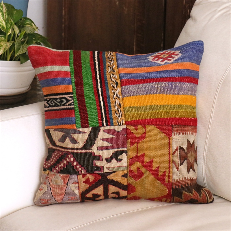 オールドキリム クッションカバー 40cm角 41×40cm パッチワーク トルコキリム