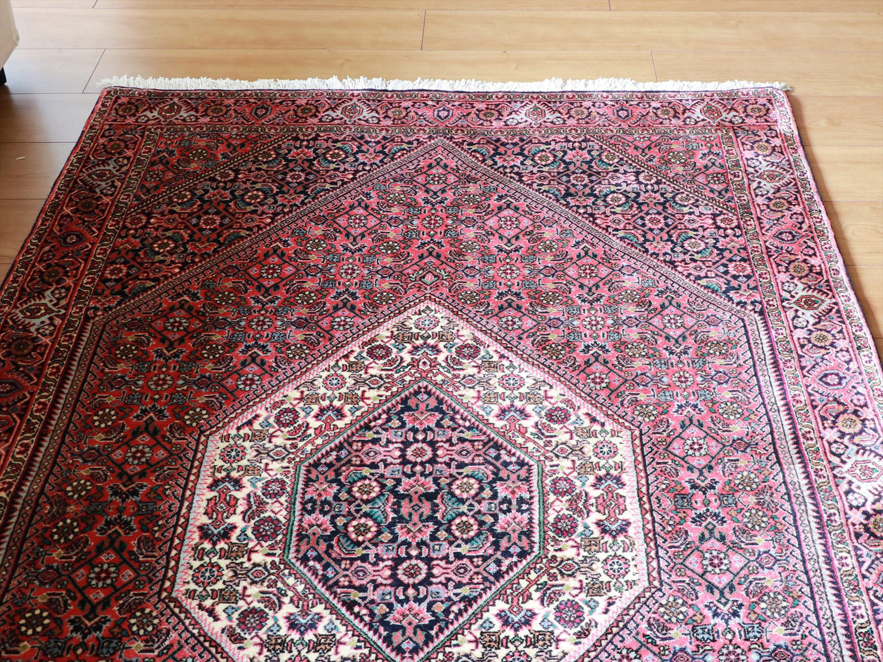 イラン北西にある都市ビジャールで織られたじゅうたんです。この地域には主にクルド系の民族が住んでおり、絨毯はトルコ結びで作られています。ビジャールのじゅたんは織りの目が詰まっており、砂やほこりが入りにくいため耐久性に優れていると言われています。