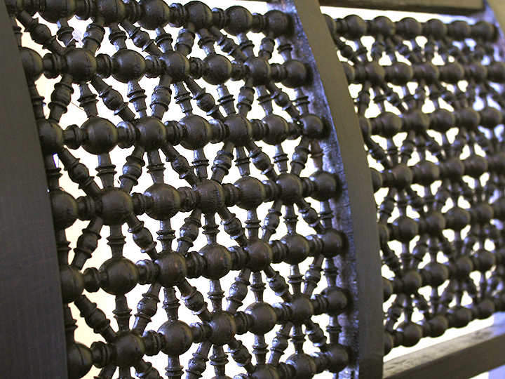 | 【Mashrabiya-マシャラビア-】 木製細工はマシャラビアと呼ばれ、ファーティマ朝時代に盛んになったエジプト独自のデザインです。元々エジプトでは家の二階以上の外窓に使われていましたが、現在では家の中でも使われています。外からは見えず、中からでしか見ることができないので女性部屋の窓などに多く使用されています。木材の供給量が少なかったエジプトにおいて細かいピースを必要とするこの装飾は最適でした。生産が減少する一方ですが、デザインは人気があり、その仕様は現代エジプトの家でも見られます。 【家具のつくりについて】 木製細工は、かなりラフな細工であることは否めません。全体的ににシミ、汚れ、傷などがあり、新品ですがアンティーク調に仕上がっています。 お国柄ということでご理解いただき、中東ならではのデザインをお楽しみいただければと思っております。 |