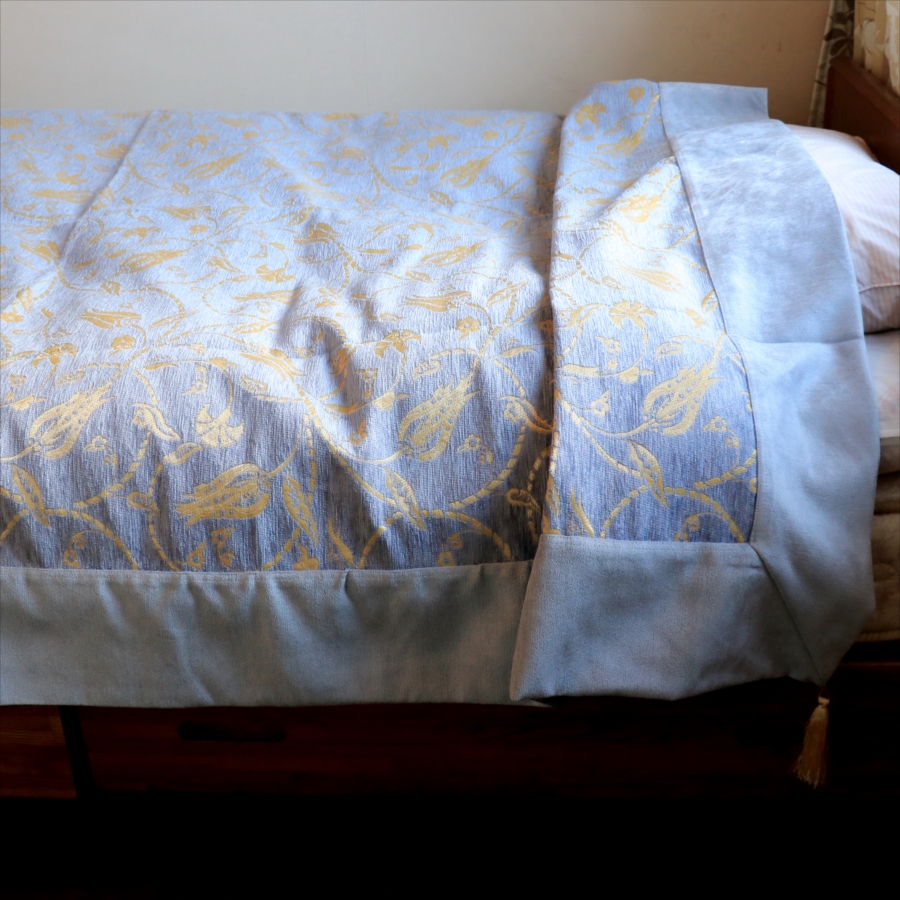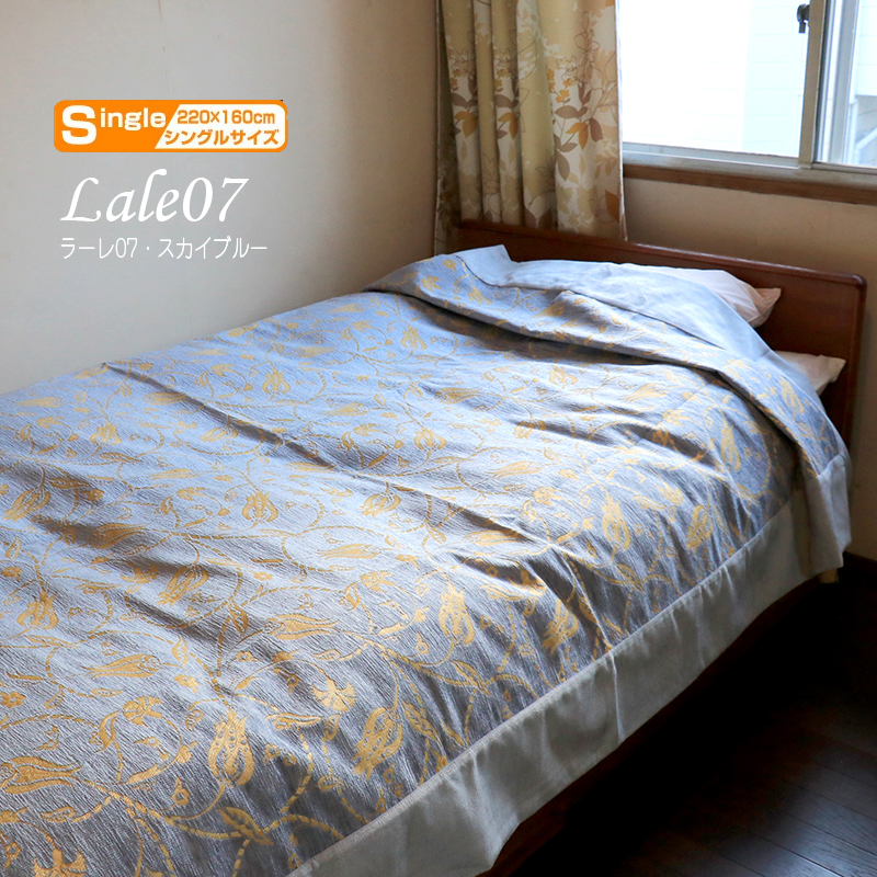 - ベッドカバー (ベッドスプレッド)シングル サイズ/ ラーレ07・スカイブルー