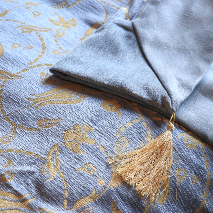 「ラーレ」とはトルコ語でチューリップのこと。スルタンの保護のもと、華やかな宮廷文化が生まれた17世紀のオスマントルコでは此花が大流行し、多くの宮廷用具にチューリップのモチーフが用いられました。現在でもチューリップはトルコの国花であり、もっとも人気の高いモチーフです。この伝統的なデザインをアレンジして、素敵なベッドカバーを仕立てました。
