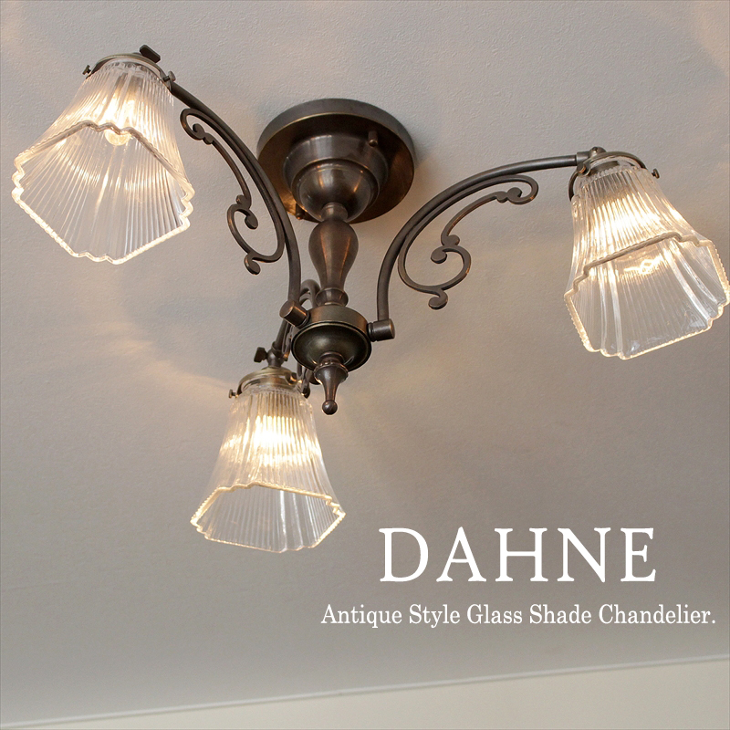 シーリングシャンデリア・アンティーク調ガラスシェード・ブロンズ・ダフネ・3灯