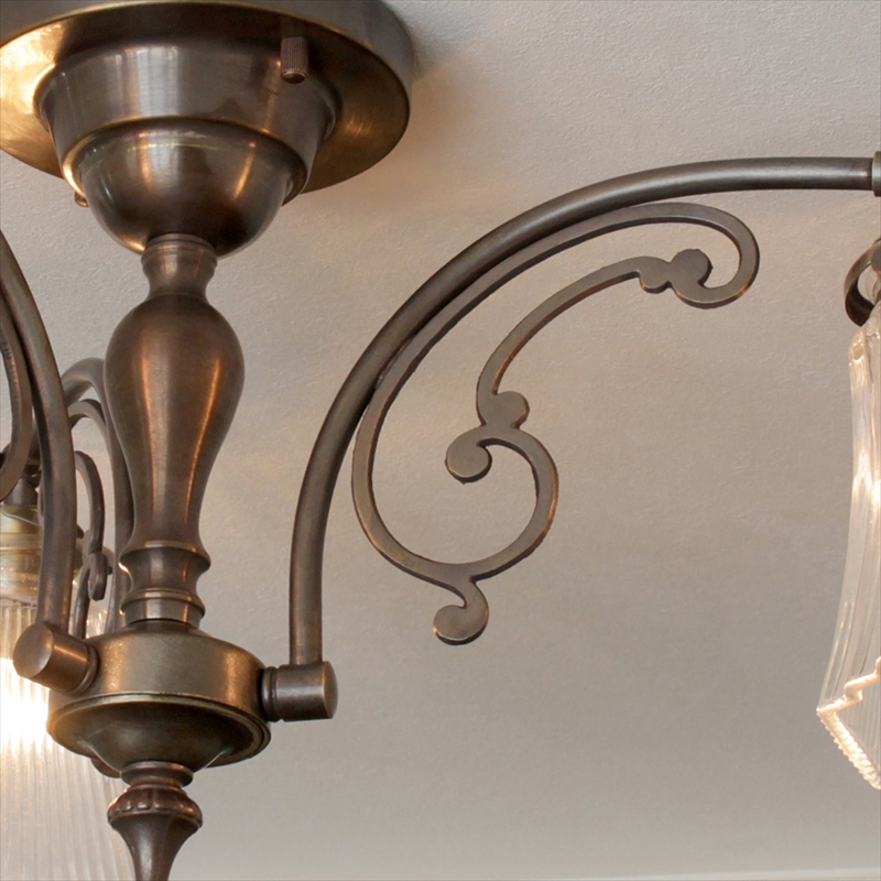 引っ掛けシーリング対応の天井直付けタイプなので、天井からの距離も短くアンティークな雰囲気はそのままに、お部屋の空間を大きく活用できます。