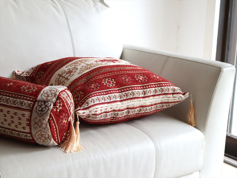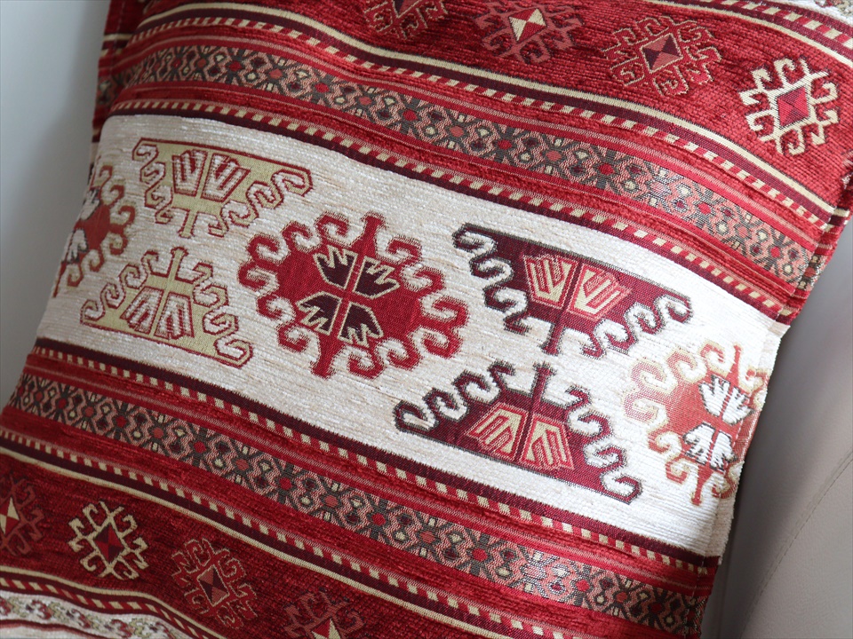 「アジデルハ」とは、トルコ語でドラゴンのこと。古くからキリムなどに使われていたドラゴンの抽象モチーフがデザインされたエスニックムード満点のクッションカバー。