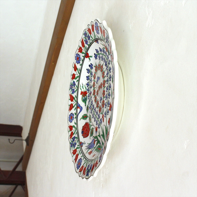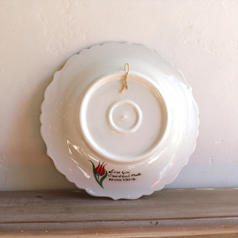 トルコ・手書き絵皿 キュタフヤ陶器 プレート30cmスズランと赤いカーネーション