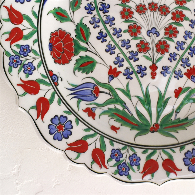- トルコ・手書き絵皿 キュタフヤ陶器 プレート30cmスズランと赤いカーネーション