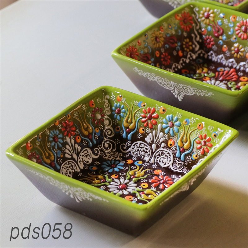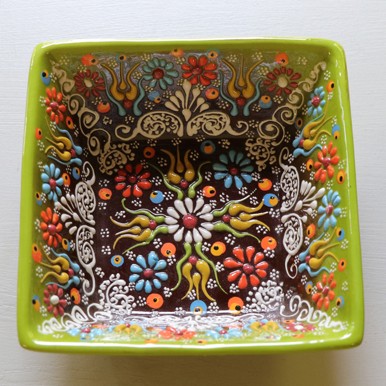 Nimet Design トルコ陶器スクエア角鉢・グリーン パステルグラデーション・立体釉キュタフヤ陶器
